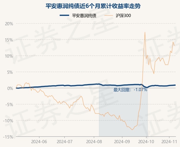 证券之星消息,11月8日,平安惠润纯债最新单位净值为1.0645元,累计净值为1.1365元,较前一交易日上涨0.02%。历史数据显示该基金近1个月上涨0.72%,近3个月下跌0.22%,近6个月上涨0.89%,近1年上涨2.75%。该基金近6个月的累计收益率走势如下图: