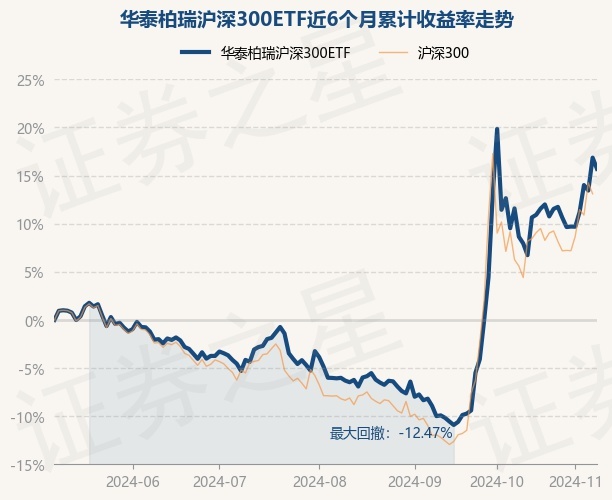 证券之星消息,11月8日,华泰柏瑞沪深300ETF最新单位净值为4.1916元,累计净值为1.803元,较前一交易日下跌1.0%。历史数据显示该基金近1个月下跌3.46%,近3个月上涨23.11%,近6个月上涨15.7%,近1年上涨16.27%。该基金近6个月的累计收益率走势如下图: