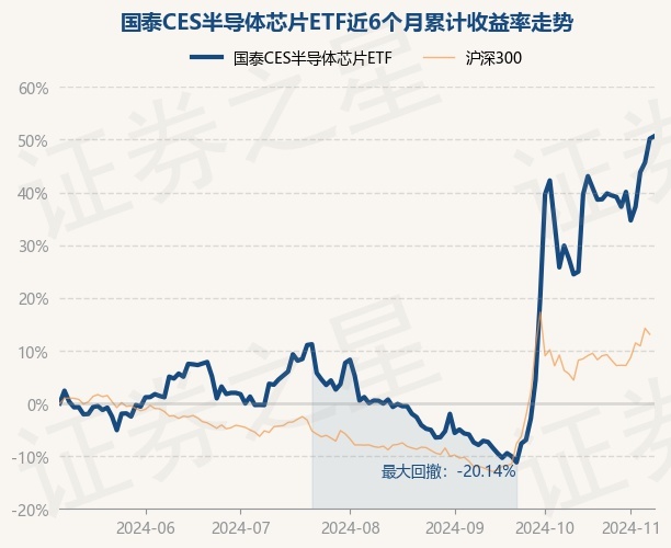 证券之星消息,11月8日,国泰CES半导体芯片ETF最新单位净值为1.1808元,累计净值为2.3616元,较前一交易日上涨0.33%。历史数据显示该基金近1个月上涨7.88%,近3个月上涨49.87%,近6个月上涨50.67%,近1年上涨19.07%。该基金近6个月的累计收益率走势如下图: