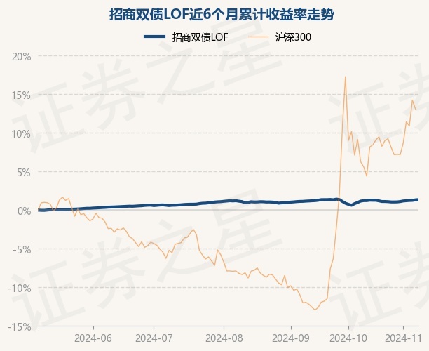 证券之星消息,11月8日,招商双债LOF最新单位净值为1.5698元,累计净值为1.7088元,较前一交易日上涨0.03%。历史数据显示该基金近1个月上涨0.61%,近3个月上涨0.2%,近6个月上涨1.36%,近1年上涨4.52%。该基金近6个月的累计收益率走势如下图: