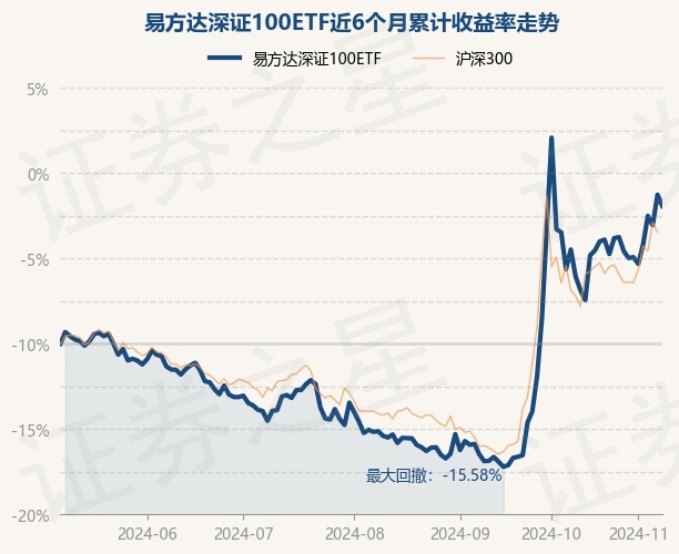 证券之星消息,11月8日,易方达深证100ETF最新单位净值为2.9328元,累计净值为5.6832元,较前一交易日下跌1.13%。历史数据显示该基金近1个月下跌6.45%,近3个月上涨29.4%,近6个月上涨16.15%,近1年上涨12.21%。该基金近6个月的累计收益率走势如下图: