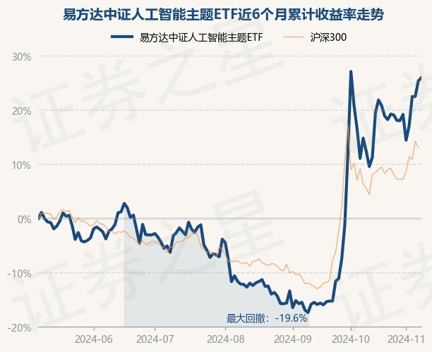 证券之星消息,11月8日,易方达中证人工智能主题ETF最新单位净值为0.9298元,累计净值为0.9298元,较前一交易日上涨0.46%。历史数据显示该基金近1个月下跌0.92%,近3个月上涨43.31%,近6个月上涨25.96%,近1年上涨19.43%。该基金近6个月的累计收益率走势如下图: