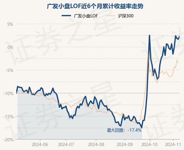证券之星消息,11月8日,广发小盘LOF最新单位净值为1.5256元,累计净值为4.8967元,较前一交易日上涨0.97%。历史数据显示该基金近1个月下跌0.42%,近3个月上涨30.1%,近6个月上涨24.5%,近1年上涨2.2%。该基金近6个月的累计收益率走势如下图: