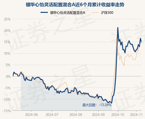 证券之星消息,11月8日,银华心怡灵活配置混合A最新单位净值为2.5243元,累计净值为2.6973元,较前一交易日下跌1.35%。历史数据显示该基金近1个月下跌5.17%,近3个月上涨23.81%,近6个月上涨14.92%,近1年上涨2.52%。该基金近6个月的累计收益率走势如下图: