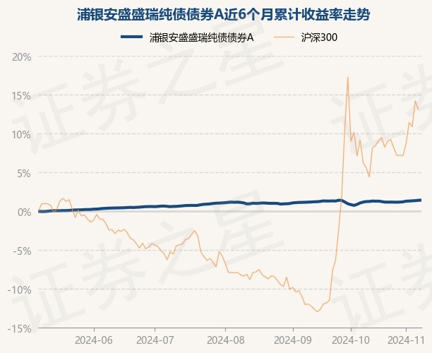 证券之星消息,11月8日,浦银安盛盛瑞纯债债券A最新单位净值为1.0677元,累计净值为1.0947元,较前一交易日上涨0.02%。历史数据显示该基金近1个月上涨0.57%,近3个月上涨0.29%,近6个月上涨1.43%,近1年上涨3.95%。该基金近6个月的累计收益率走势如下图:
