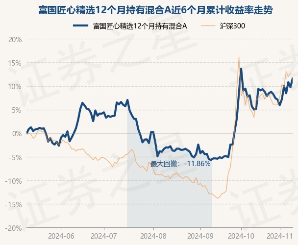 证券之星消息,11月11日,富国匠心精选12个月持有混合A最新单位净值为0.73元,累计净值为0.73元,较前一交易日上涨1.67%。历史数据显示该基金近1个月上涨3.59%,近3个月上涨15.03%,近6个月上涨11.57%,近1年上涨3.89%。该基金近6个月的累计收益率走势如下图: