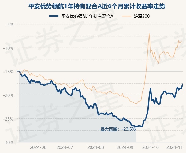 证券之星消息,11月11日,平安优势领航1年持有混合A最新单位净值为0.6246元,累计净值为0.6246元,较前一交易日上涨1.94%。历史数据显示该基金近1个月上涨9.56%,近3个月上涨15.45%,近6个月下跌5.41%,近1年下跌8.28%。该基金近6个月的累计收益率走势如下图: