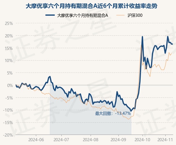 证券之星消息,11月11日,大摩优享六个月持有期混合A最新单位净值为0.8536元,累计净值为0.8536元,较前一交易日上涨0.0%。历史数据显示该基金近1个月上涨12.43%,近3个月上涨28.55%,近6个月上涨19.85%,近1年上涨6.67%。该基金近6个月的累计收益率走势如下图: