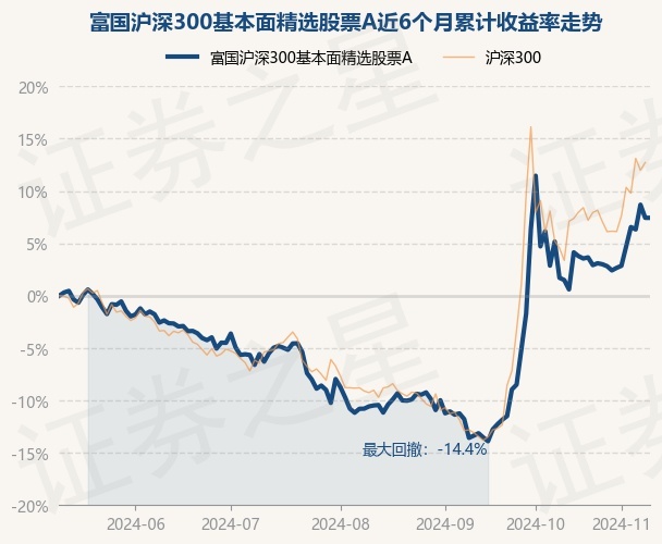 证券之星消息,11月11日,富国沪深300基本面精选股票A最新单位净值为0.8066元,累计净值为0.8066元,较前一交易日上涨0.0%。历史数据显示该基金近1个月上涨4.67%,近3个月上涨20.41%,近6个月上涨7.68%,近1年上涨9.35%。该基金近6个月的累计收益率走势如下图: