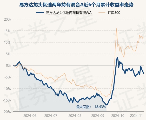 证券之星消息,11月11日,易方达龙头优选两年持有混合A最新单位净值为0.8419元,累计净值为0.8419元,较前一交易日下跌1.01%。历史数据显示该基金近1个月下跌3.47%,近3个月上涨14.06%,近6个月下跌2.77%,近1年下跌0.48%。该基金近6个月的累计收益率走势如下图: