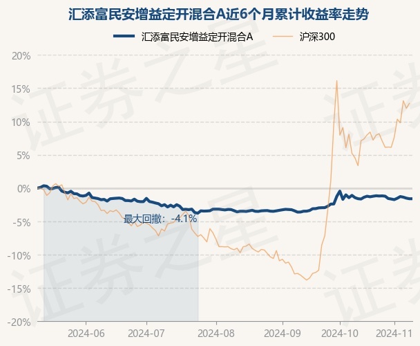证券之星消息,11月11日,汇添富民安增益定开混合A最新单位净值为1.4126元,累计净值为1.4126元,较前一交易日上涨0.0%。历史数据显示该基金近1个月下跌0.16%,近3个月上涨1.85%,近6个月下跌1.6%,近1年上涨2.07%。该基金近6个月的累计收益率走势如下图: