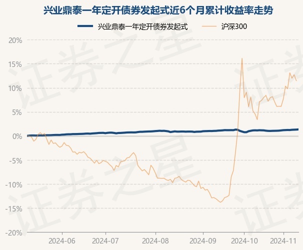 证券之星消息,11月11日,兴业鼎泰一年定开债券发起式最新单位净值为1.0132元,累计净值为1.1331元,较前一交易日上涨0.02%。历史数据显示该基金近1个月上涨0.25%,近3个月上涨0.36%,近6个月上涨1.31%,近1年上涨3.29%。该基金近6个月的累计收益率走势如下图: