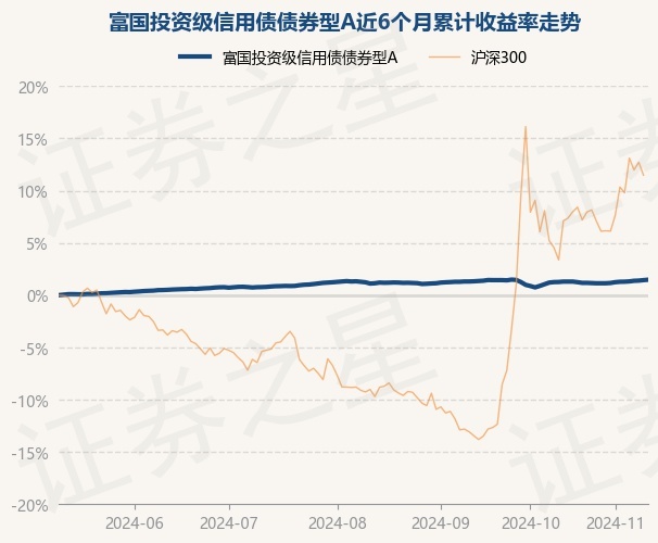证券之星消息,11月11日,富国投资级信用债债券型A最新单位净值为1.0793元,累计净值为1.1953元,较前一交易日上涨0.05%。历史数据显示该基金近1个月上涨0.39%,近3个月上涨0.2%,近6个月上涨1.44%,近1年上涨4.34%。该基金近6个月的累计收益率走势如下图: