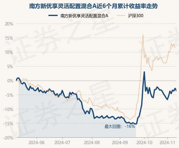 证券之星消息,11月11日,南方新优享灵活配置混合A最新单位净值为3.2378元,累计净值为3.2378元,较前一交易日上涨0.95%。历史数据显示该基金近1个月上涨1.91%,近3个月上涨11.88%,近6个月下跌2.77%,近1年上涨12.11%。该基金近6个月的累计收益率走势如下图:
