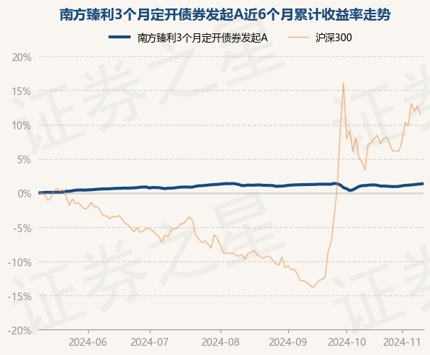 证券之星消息,11月11日,南方臻利3个月定开债券发起A最新单位净值为1.0292元,累计净值为1.1178元,较前一交易日上涨0.0%。历史数据显示该基金近1个月上涨0.62%,近3个月上涨0.08%,近6个月上涨1.32%,近1年上涨4.58%。该基金近6个月的累计收益率走势如下图: