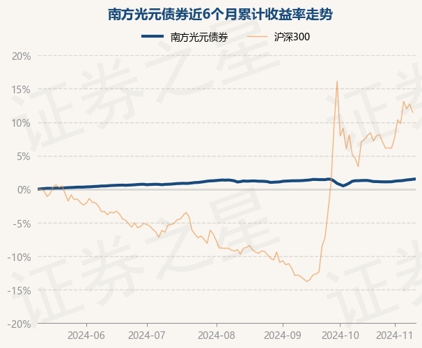 证券之星消息,11月11日,南方光元债券最新单位净值为1.0527元,累计净值为1.0727元,较前一交易日上涨0.06%。历史数据显示该基金近1个月上涨0.57%,近3个月上涨0.23%,近6个月上涨1.47%,近1年上涨4.13%。该基金近6个月的累计收益率走势如下图: