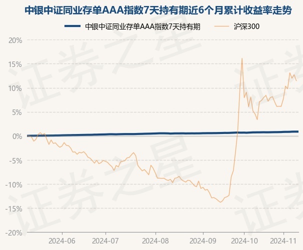 证券之星消息,11月11日,中银中证同业存单AAA指数7天持有期最新单位净值为1.0511元,累计净值为1.0511元,较前一交易日上涨0.0%。历史数据显示该基金近1个月上涨0.18%,近3个月上涨0.36%,近6个月上涨0.88%,近1年上涨2.22%。该基金近6个月的累计收益率走势如下图: