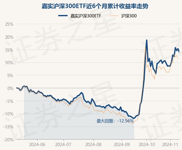 证券之星消息,11月11日,嘉实沪深300ETF最新单位净值为4.3276元,累计净值为1.9506元,较前一交易日上涨0.65%。历史数据显示该基金近1个月上涨6.37%,近3个月上涨24.36%,近6个月上涨15.28%,近1年上涨17.84%。该基金近6个月的累计收益率走势如下图: