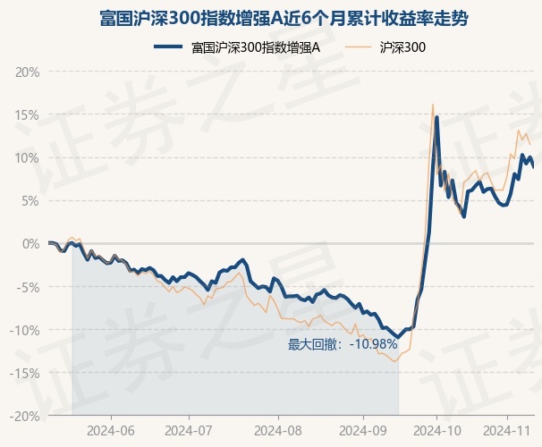 证券之星消息,11月11日,富国沪深300指数增强A最新单位净值为1.633元,累计净值为2.219元,较前一交易日上涨0.68%。历史数据显示该基金近1个月上涨4.41%,近3个月上涨17.65%,近6个月上涨9.97%,近1年上涨14.52%。该基金近6个月的累计收益率走势如下图: