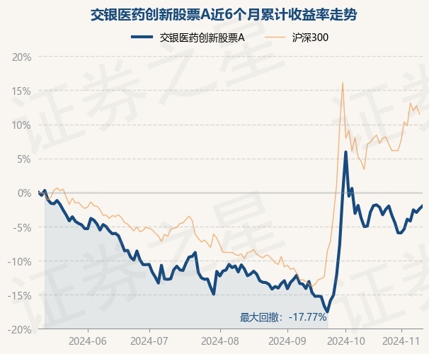 证券之星消息,11月11日,交银医药创新股票A最新单位净值为2.2899元,累计净值为2.2899元,较前一交易日上涨0.56%。历史数据显示该基金近1个月上涨0.7%,近3个月上涨10.5%,近6个月下跌2.4%,近1年下跌11.06%。该基金近6个月的累计收益率走势如下图: