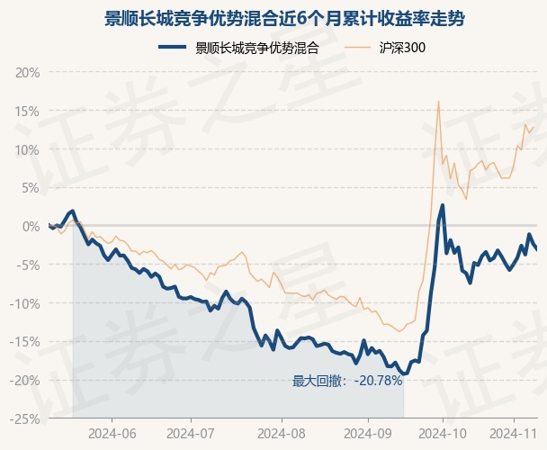证券之星消息,11月11日,景顺长城竞争优势混合最新单位净值为0.8249元,累计净值为0.8249元,较前一交易日下跌0.71%。历史数据显示该基金近1个月上涨0.52%,近3个月上涨13.61%,近6个月下跌3.08%,近1年上涨3.97%。该基金近6个月的累计收益率走势如下图:
