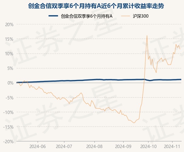 证券之星消息,11月12日,创金合信双季享6个月持有A最新单位净值为1.156元,累计净值为1.156元,较前一交易日上涨0.0%。历史数据显示该基金近1个月上涨0.27%,近3个月上涨0.14%,近6个月上涨1.08%,近1年上涨4.29%。该基金近6个月的累计收益率走势如下图: