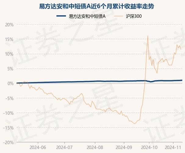证券之星消息,11月12日,易方达安和中短债A最新单位净值为1.0693元,累计净值为1.1193元,较前一交易日上涨0.02%。历史数据显示该基金近1个月上涨0.38%,近3个月上涨0.35%,近6个月上涨0.98%,近1年上涨2.88%。该基金近6个月的累计收益率走势如下图: