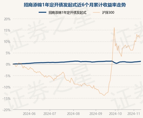 证券之星消息,11月12日,招商添锦1年定开债发起式最新单位净值为1.0518元,累计净值为1.1313元,较前一交易日上涨0.07%。历史数据显示该基金近1个月上涨0.58%,近3个月上涨0.18%,近6个月上涨1.24%,近1年上涨3.77%。该基金近6个月的累计收益率走势如下图: