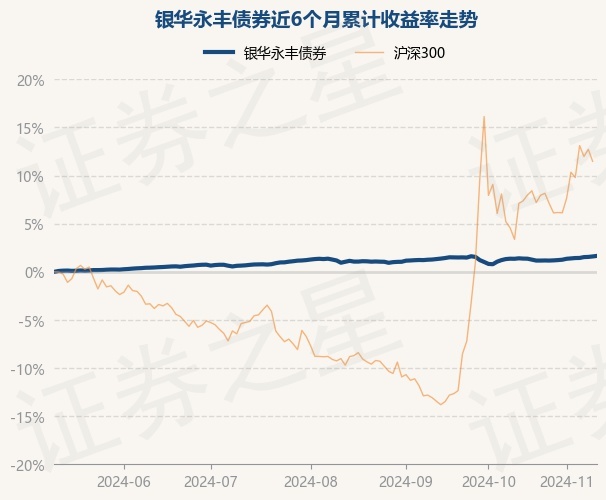 证券之星消息,11月12日,银华永丰债券最新单位净值为1.047元,累计净值为1.094元,较前一交易日上涨0.06%。历史数据显示该基金近1个月上涨0.43%,近3个月上涨0.7%,近6个月上涨1.65%,近1年上涨4.34%。该基金近6个月的累计收益率走势如下图: