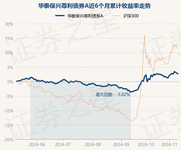 证券之星消息,11月12日,华泰保兴尊利债券A最新单位净值为1.2397元,累计净值为1.403元,较前一交易日下跌0.27%。历史数据显示该基金近1个月上涨1.93%,近3个月上涨4.41%,近6个月上涨2.61%,近1年上涨10.89%。该基金近6个月的累计收益率走势如下图:
