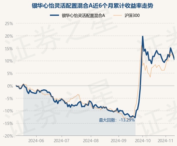 证券之星消息,11月12日,银华心怡灵活配置混合A最新单位净值为2.4577元,累计净值为2.6307元,较前一交易日下跌1.51%。历史数据显示该基金近1个月下跌1.51%,近3个月上涨21.13%,近6个月上涨10.53%,近1年上涨1.09%。该基金近6个月的累计收益率走势如下图: