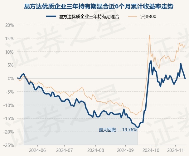 证券之星消息,11月13日,易方达优质企业三年持有期混合最新单位净值为0.8999元,累计净值为0.8999元,较前一交易日下跌0.13%。历史数据显示该基金近1个月下跌2.94%,近3个月上涨14.43%,近6个月下跌0.13%,近1年下跌3.63%。该基金近6个月的累计收益率走势如下图: