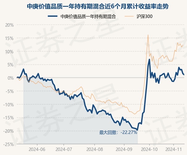 证券之星消息,11月13日,中庚价值品质一年持有期混合最新单位净值为1.5314元,累计净值为1.5314元,较前一交易日下跌0.4%。历史数据显示该基金近1个月上涨1.18%,近3个月上涨15.73%,近6个月上涨1.09%,近1年上涨5.91%。该基金近6个月的累计收益率走势如下图: