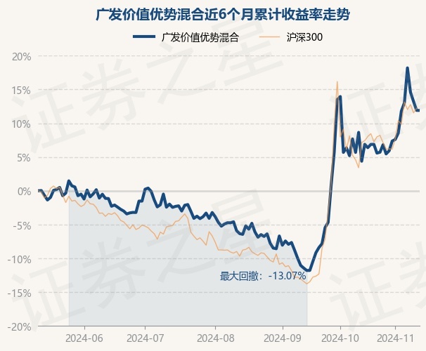 证券之星消息,11月13日,广发价值优势混合最新单位净值为1.5787元,累计净值为1.5787元,较前一交易日上涨0.0%。历史数据显示该基金近1个月上涨5.73%,近3个月上涨18.75%,近6个月上涨11.22%,近1年上涨26.46%。该基金近6个月的累计收益率走势如下图: