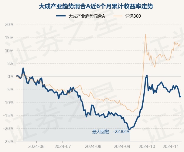 证券之星消息,11月13日,大成产业趋势混合A最新单位净值为1.4205元,累计净值为1.4205元,较前一交易日上涨0.31%。历史数据显示该基金近1个月下跌2.76%,近3个月上涨7.95%,近6个月下跌7.71%,近1年上涨10.74%。该基金近6个月的累计收益率走势如下图: