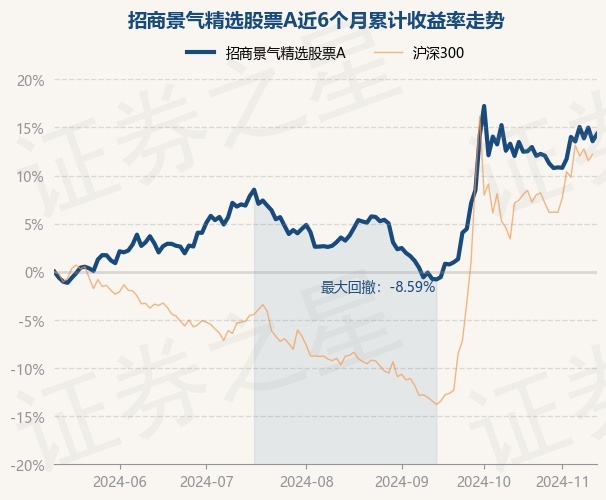 证券之星消息,11月13日,招商景气精选股票A最新单位净值为1.0054元,累计净值为1.0054元,较前一交易日上涨0.66%。历史数据显示该基金近1个月上涨0.95%,近3个月上涨10.39%,近6个月上涨14.31%,近1年上涨30.67%。该基金近6个月的累计收益率走势如下图: