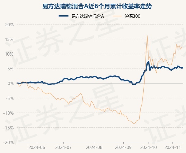 证券之星消息,11月13日,易方达瑞锦混合A最新单位净值为1.2485元,累计净值为1.2885元,较前一交易日上涨0.23%。历史数据显示该基金近1个月上涨0.2%,近3个月上涨3.76%,近6个月上涨5.36%,近1年上涨11.1%。该基金近6个月的累计收益率走势如下图: