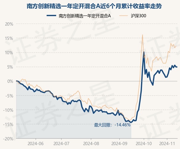 证券之星消息,11月13日,南方创新精选一年定开混合A最新单位净值为0.7615元,累计净值为0.7615元,较前一交易日上涨0.0%。历史数据显示该基金近1个月上涨4.85%,近3个月上涨18.03%,近6个月上涨6.18%,近1年上涨7.19%。该基金近6个月的累计收益率走势如下图: