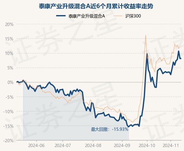 证券之星消息,11月13日,泰康产业升级混合A最新单位净值为1.7182元,累计净值为1.8884元,较前一交易日下跌0.01%。历史数据显示该基金近1个月上涨7.91%,近3个月上涨20.72%,近6个月上涨8.11%,近1年上涨12.32%。该基金近6个月的累计收益率走势如下图: