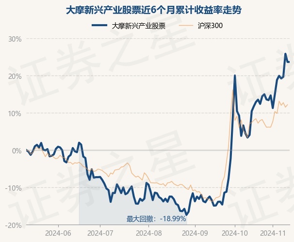 证券之星消息,11月13日,大摩新兴产业股票最新单位净值为0.9958元,累计净值为0.9958元,较前一交易日上涨0.0%。历史数据显示该基金近1个月上涨19.1%,近3个月上涨42.18%,近6个月上涨23.67%,近1年上涨10.36%。该基金近6个月的累计收益率走势如下图: