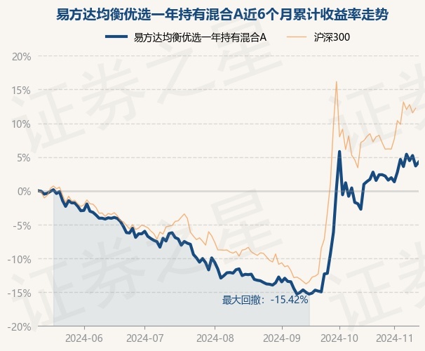 证券之星消息,11月13日,易方达均衡优选一年持有混合A最新单位净值为1.0981元,累计净值为1.0981元,较前一交易日上涨0.55%。历史数据显示该基金近1个月上涨5.1%,近3个月上涨17.86%,近6个月上涨4.24%,近1年上涨7.18%。该基金近6个月的累计收益率走势如下图: