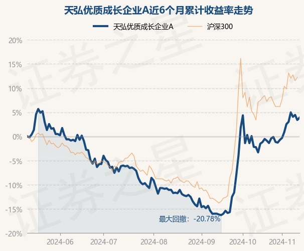 证券之星消息,11月13日,天弘优质成长企业A最新单位净值为1.7758元,累计净值为1.7758元,较前一交易日上涨0.46%。历史数据显示该基金近1个月上涨5.34%,近3个月上涨16.77%,近6个月上涨3.88%,近1年上涨4.09%。该基金近6个月的累计收益率走势如下图: