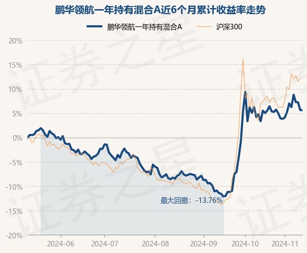 证券之星消息,11月13日,鹏华领航一年持有混合A最新单位净值为1.089元,累计净值为1.089元,较前一交易日上涨0.0%。历史数据显示该基金近1个月上涨1.12%,近3个月上涨15.76%,近6个月上涨6.24%,近1年上涨16.28%。该基金近6个月的累计收益率走势如下图: