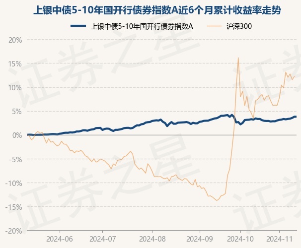 证券之星消息,11月13日,上银中债5-10年国开行债券指数A最新单位净值为1.0909元,累计净值为1.1739元,较前一交易日上涨0.0%。历史数据显示该基金近1个月上涨0.5%,近3个月上涨1.31%,近6个月上涨3.65%,近1年上涨9.58%。该基金近6个月的累计收益率走势如下图: