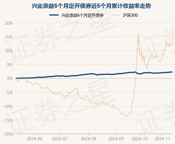 证券之星消息,11月13日,兴业添益6个月定开债券最新单位净值为1.0179元,累计净值为1.0769元,较前一交易日下跌0.05%。历史数据显示该基金近1个月上涨0.33%,近3个月上涨0.91%,近6个月上涨2.24%,近1年上涨5.03%。该基金近6个月的累计收益率走势如下图: