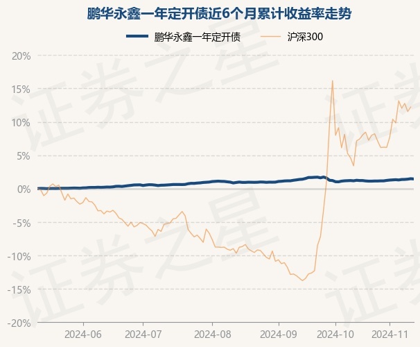 证券之星消息,11月13日,鹏华永鑫一年定开债最新单位净值为1.0232元,累计净值为1.0642元,较前一交易日下跌0.04%。历史数据显示该基金近1个月上涨0.27%,近3个月上涨0.52%,近6个月上涨1.45%,近1年上涨3.71%。该基金近6个月的累计收益率走势如下图: