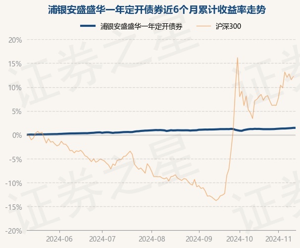 证券之星消息,11月13日,浦银安盛盛华一年定开债券最新单位净值为1.0391元,累计净值为1.1211元,较前一交易日上涨0.0%。历史数据显示该基金近1个月上涨0.36%,近3个月上涨0.57%,近6个月上涨1.44%,近1年上涨3.84%。该基金近6个月的累计收益率走势如下图: