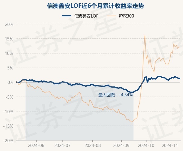 证券之星消息,11月13日,信澳鑫安LOF最新单位净值为1.065元,累计净值为1.392元,较前一交易日上涨0.09%。历史数据显示该基金近1个月上涨0.47%,近3个月上涨2.8%,近6个月上涨1.33%,近1年上涨5.86%。该基金近6个月的累计收益率走势如下图: