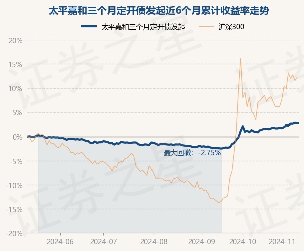 证券之星消息,11月13日,太平嘉和三个月定开债发起最新单位净值为1.0506元,累计净值为1.0506元,较前一交易日上涨0.03%。历史数据显示该基金近1个月上涨1.83%,近3个月上涨4.43%,近6个月上涨2.75%,近1年上涨4.8%。该基金近6个月的累计收益率走势如下图: