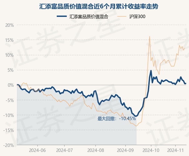 证券之星消息,11月13日,汇添富品质价值混合最新单位净值为1.1391元,累计净值为1.1391元,较前一交易日上涨0.07%。历史数据显示该基金近1个月下跌1.47%,近3个月上涨5.66%,近6个月上涨0.44%,近1年上涨12.13%。该基金近6个月的累计收益率走势如下图: